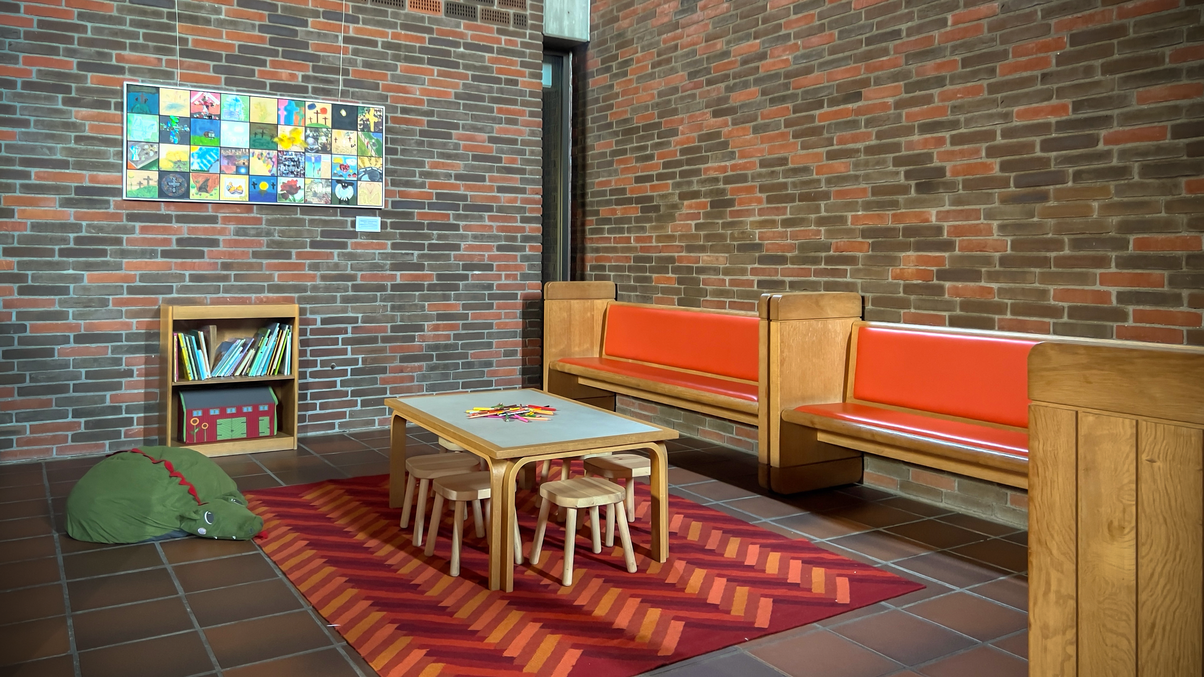 Her kan mindre børn tegne, læse eller lege stilfærdigt under gudstjenester og andre kirkelige handlinger.