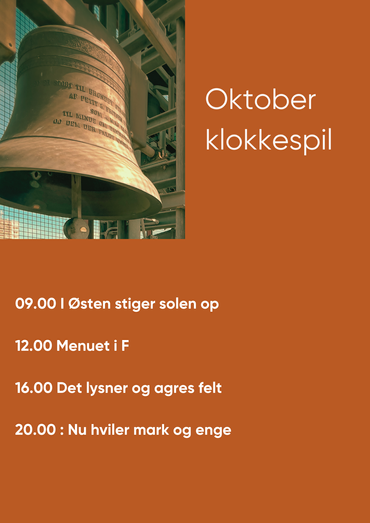 Oktobers Klokkespil. Hver dag i oktober kan man høre klokkenist & organist Katrine Immerkjær Kristinasen spille på kirkens klokker.